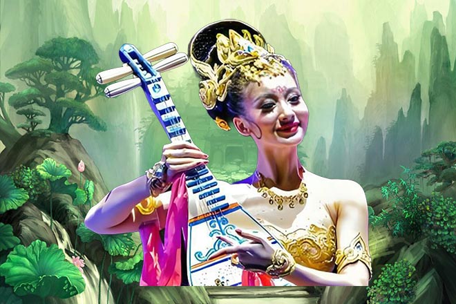 风伯雨师分身,头如雀鸟,长着峥嵘双角,蛇尾豹纹,左手持轮,右手持扇。