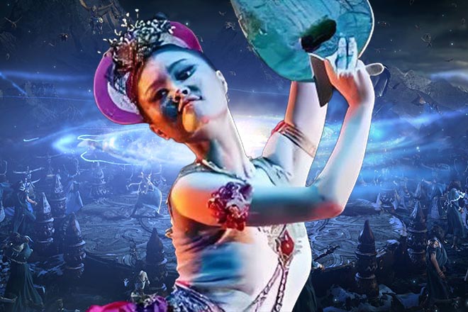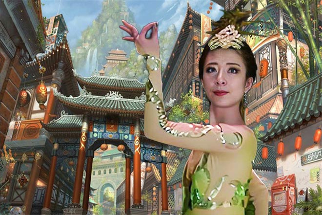明明刚才应该是站在说不上有什么景致的山峰,但此时却紫氲升腾,云雾中宫廷楼阁隐现,有一瀑布从山峰飞泄而下,如银河落下,溅起粒粒晶莹水珠。