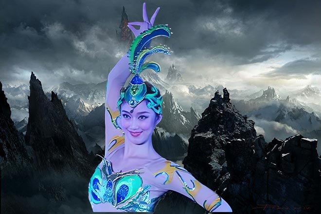 只见半空中五座山峰悬空而浮,山峰仙雾缭绕,在夕阳下折射出满目的霞光。五座山峰各有一白玉造成的长桥连着中间一处百余亩大小的平地。
